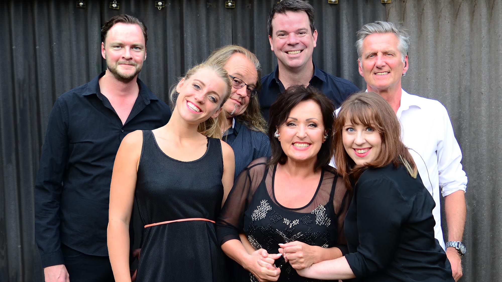 Ute mit ihrer Band: v.l.n.r.: Stuart Kemp, Anna-Marlene Bicking, Andreas Gemeinhardt, Stefan Vogt, Ulrike Weidemüller, Manfred Schermuly